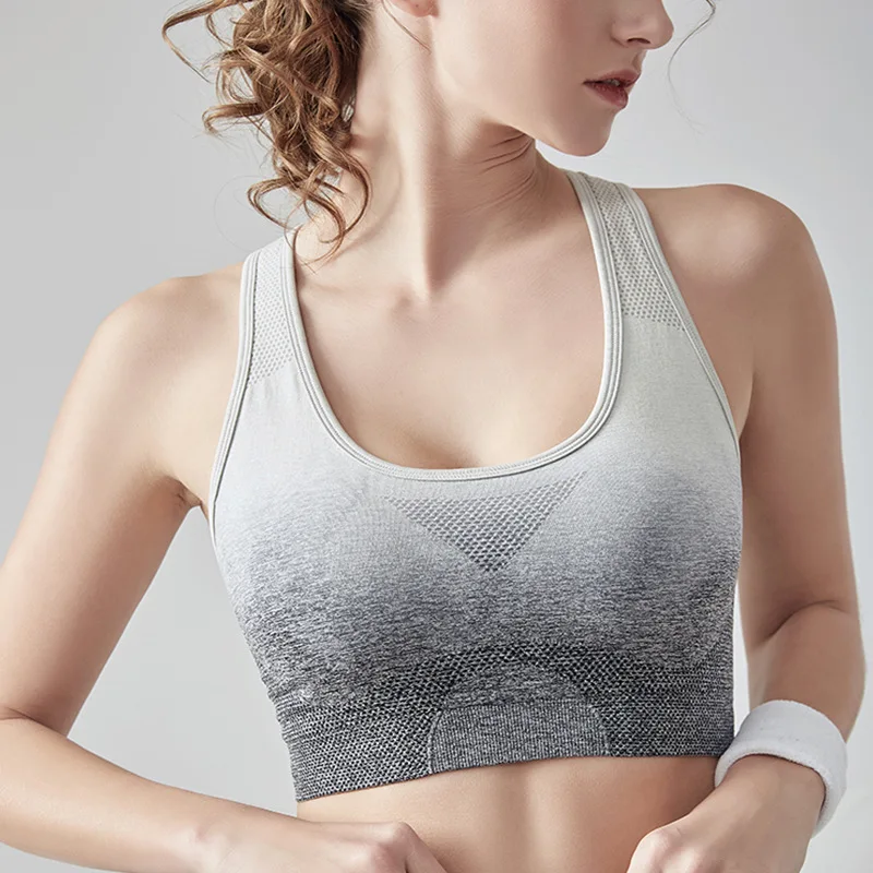 Fitness Yoga Bra Gathering Hanging Dye Seamless Jacquard Rings-free Sports Running Underwear Women’s Breathable Quick-drying