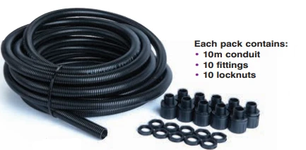 Flexicon FPYE-CP25B Contractor Pack Black Nylon · · · Product: Contractor · · Qualifier: Flexible · · Thread Type: Male · · Ingress Protection: IP66 · · Material: Nylon · · Colour: Black · · Nominal Width: 25 mm · · Length: 10000 mm · · Normal Operating Minimum Temperature: -40 Degrees C · · Normal Operating Maximum Temperature: 120 Degrees C