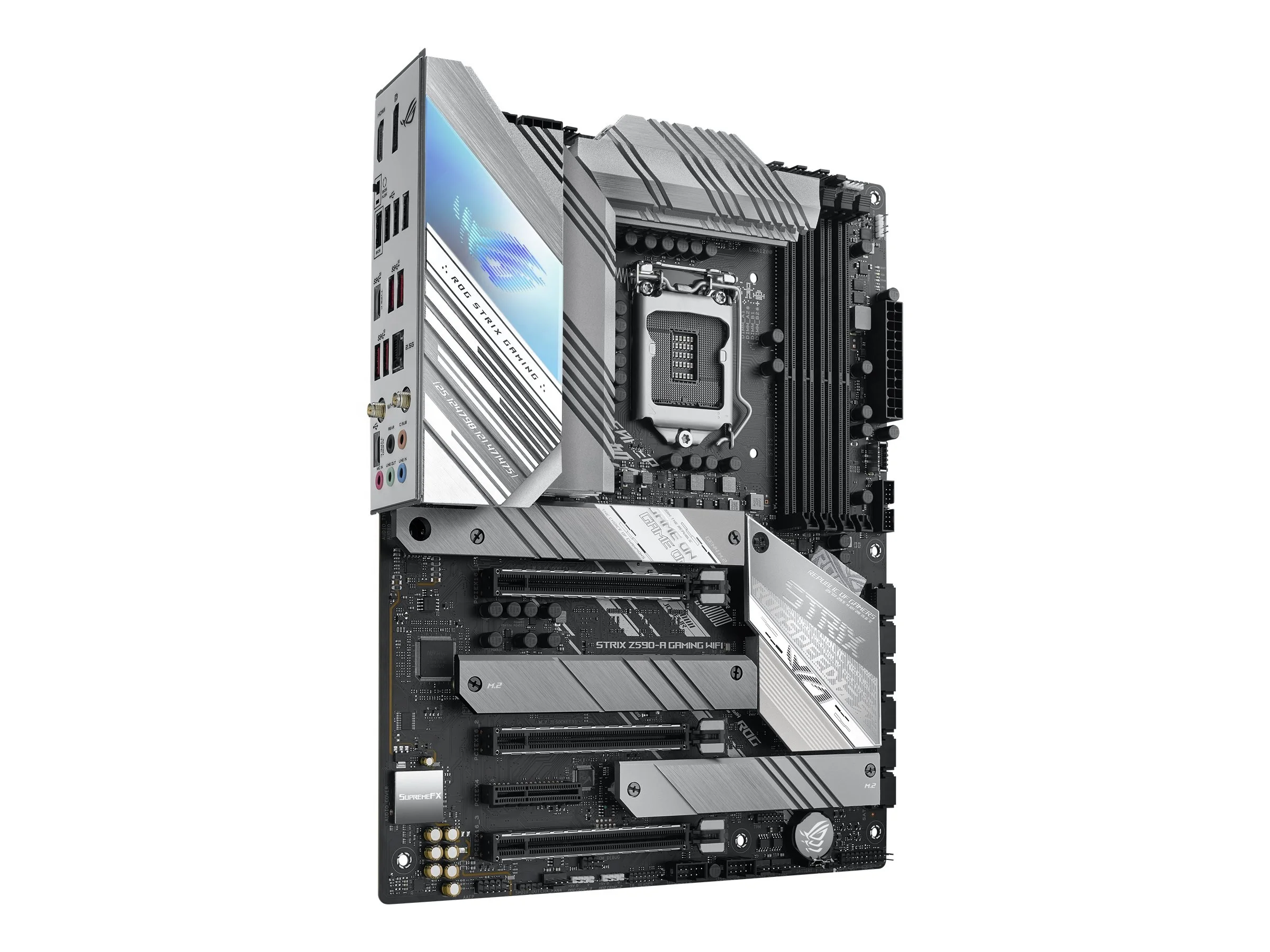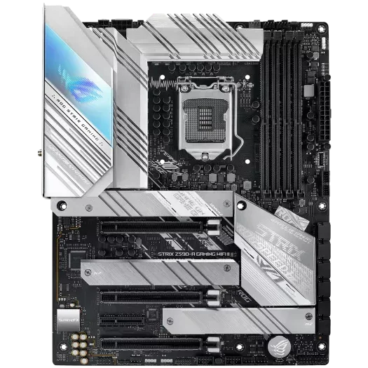 Product Description ROG STRIX Z590-A GAMING WIFI II Intel®Z590 LGA 1200 ATX motherboard with PCIe 4.0, 14+2 teamed power stages, Two-Way AI Noise Cancelation, AI Overclocking, AI Cooling, AI Networking, WiFi 6 (802.11ax), Intel®2.5 Gb Ethernet, three M.2 slots with heatsinks, USB 3.