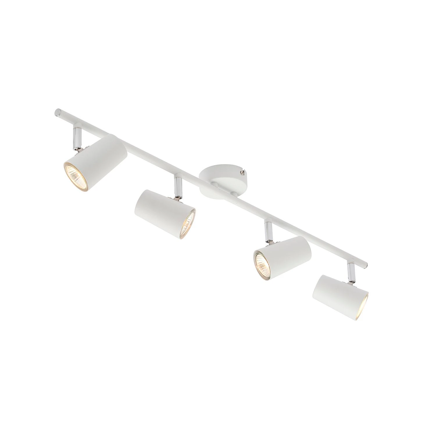 This 4 Light bar would be a perfect addition to any living space. Ideally suited for studies, hallways, living areas & utility rooms. Also suitable for offices & showrooms · · · Swivel head adjustment · · Tilt head adjustment · · Tilt & Swivel can be moved in any direction · · The item is a GU10 fitting which has the benefit of using a wide range of lamp options · · Can be used as ambient light or the heads can be turned to highlight specific area’s · · Steel construction