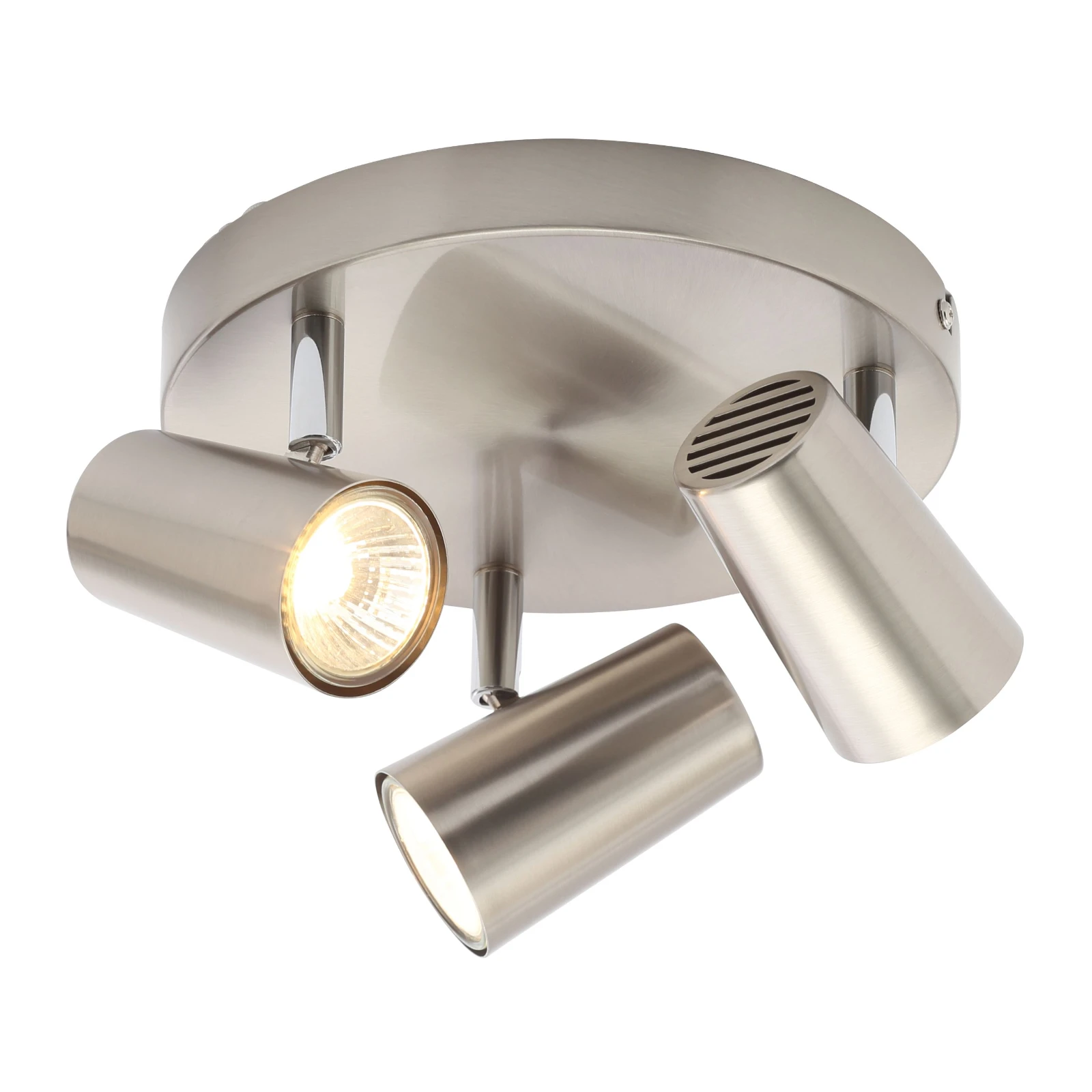 This 3 light spotlight would be a perfect addition to any living space. Ideally suited for studies, hallways, living areas & utility rooms. Also suitable for offices & showrooms · · · Swivel head adjustment · · Tilt head adjustment · · Tilt & Swivel can be moved in any direction · · The item is a GU10 fitting which has the benefit of using a wide range of lamp options · · Can be used as ambient light or the heads can be turned to highlight specific area’s · · Steel construction