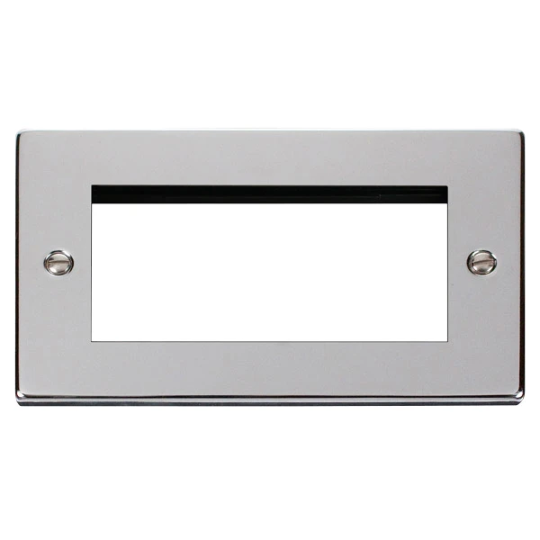 Front Plate 2 Gang 4 Module Polished Chrome Black & White Gasket Victorian