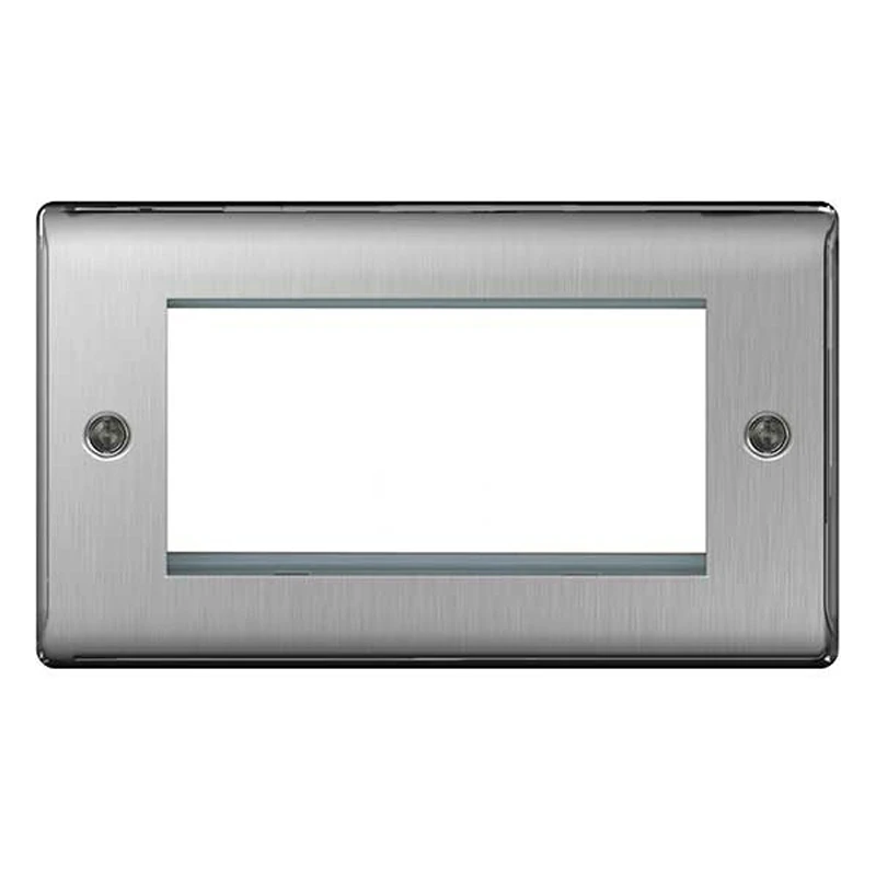 Front Plate 4 Module Grid Rectangular Brushed Steel