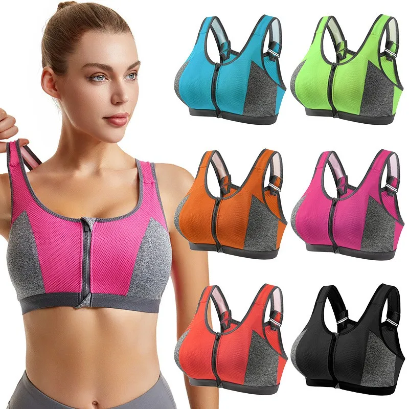 Front Zipper High-strength Seamless Shock-absorbing Yoga Fitness Running Bra Without Steel Ring Cup Sports Bra Pack of 3
