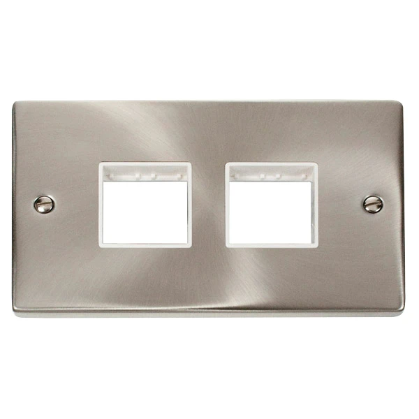 Frontplate 2 Gang 4 Apeture 2×2 White Gasket Victorian Satin Chrome