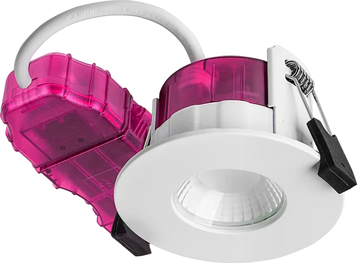 Representing the pinnacle of downlight technology today – specifically developed to streamline and help first-second fix installations, offering the very latest innovations for safety, ease of installation and testing compliance. Combining premium features, including wide 60º baffled back lens for reduced glare, with new innovative developments, from our QuickView window making it easier to inspect cables after locking lid shut, to our 500V VDE certified connection block, allowing installers to save time when 500V testing full installations. A 500V insulation testing connector block allowing you to comprehensively test all installations without the hassle. Fully separable VDE certified connector block, providing complete 360-degree access to the terminals saving installation time. Choose between Dim2Warm and ColourChange models for complete lighting flexibility · · · Driver Type: Dim To Warm · · Lumen Output (lm): 460/690 · · Max Wattage (W): 4/6 · · Efficacy (Lm/W): 115/115 · · Colour Temp (CCT) (K): 3000, 4000, Dim2Warm 3000K-2400K · · Beam Angle (degrees) 60 · · CRI: >80 · · Base Colour: White · · Bezel Type: Flat · · Lifetime (h) : 70000