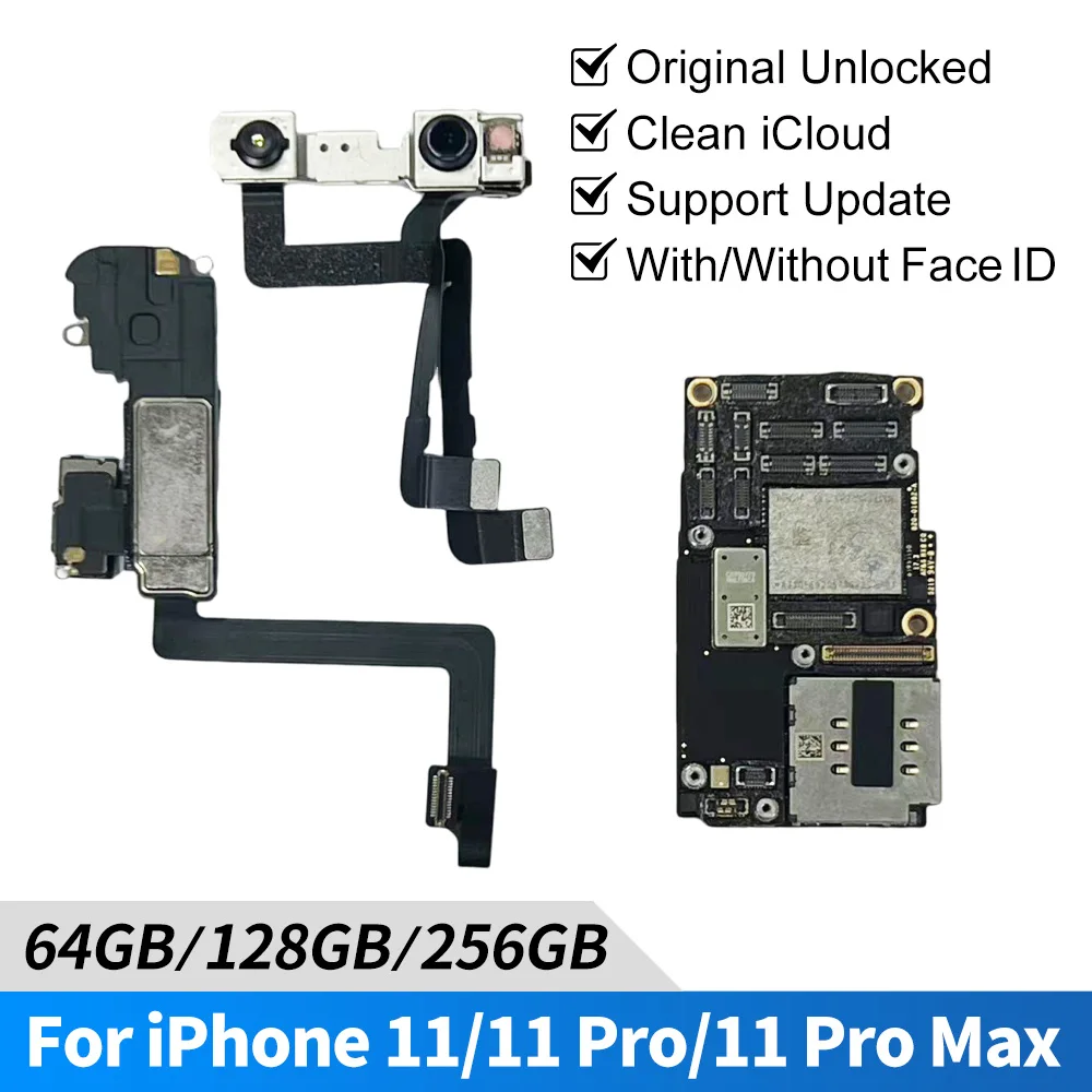 Full Working 11pro Max Motherboard With Face Id 64gb 128gb 256gb Logic Board 100% Unlocked Mainboard for Iphone 11