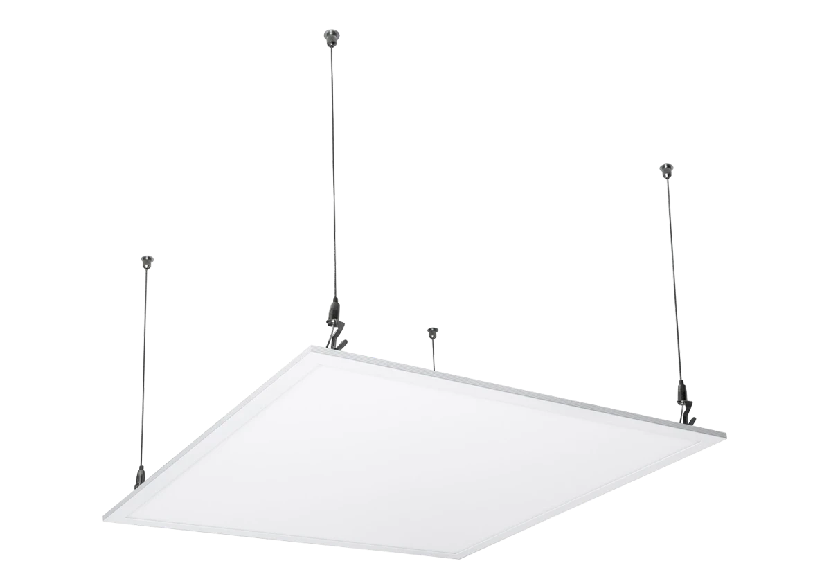 The FULTON is an IP40, edge lit, LED recessed panel. It has a PMMA light guide plate and a choice of 2 UV stable PS diffusers: opal and micro-prismatic (for applications requiring UGR<19). Supplied with a high-quality, ENEC approved, flicker free LED driver. Our Fulton panel is available in 2 wattages, 29W (600 x 600) and 55W (1200 x 600). On the opal 600 x 600 version there is a choice of 4000K or 5000K. For emergency versions, please use our emergency conversion packs, ordered as separate items. Two packs are available, standard and self-test. Each comes complete with lithium batteries, indicator LED and plug & play cables and connectors. FULTON is suitable for recessed (lay-in or pull-up), surface and suspended installation. Dimming versions of FULTON are available using DALI and switch dim. The FULTON LED panel is ideal for lighting offices, corridors, and a wide range of commercial spaces. · · · For Suspended Installations · · 2m Adjustment Via Clutch Mechanisms · · Easy To Install · · 5 Year Warranty · · Aluminium Construction with White PC Corners · · Quick and Easy To Assemble · · Easy to install · · Plug & Play Emergency STD /Self Test Options · · DALI, Switch Dim, Corridor Function Options · · UKCA CE Approved