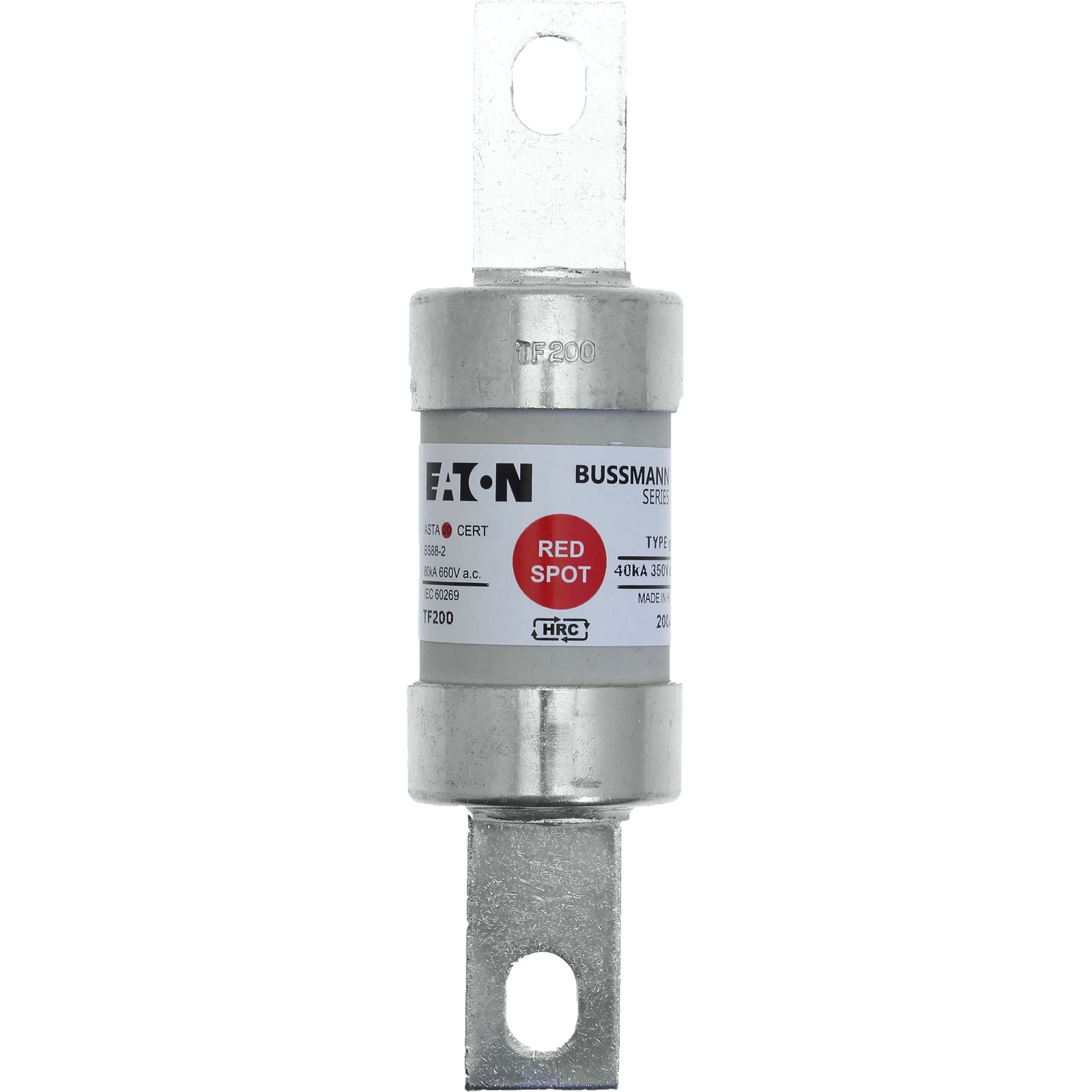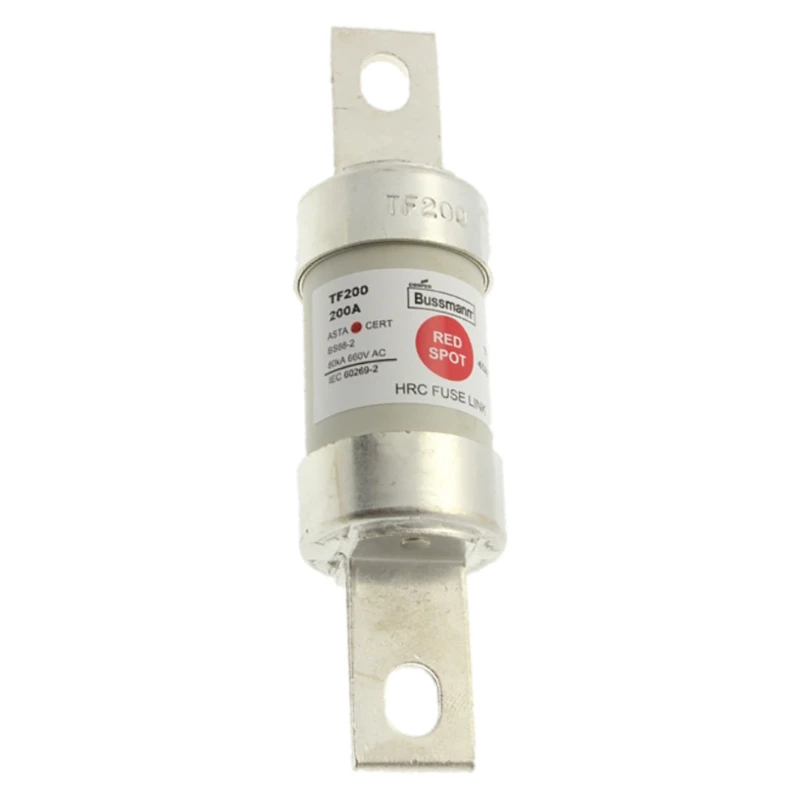 Red Spot industrial centre bolted tags fuse links are specifically designed for the protection of general industrial applications, e.g. power distribution and cable protection. · · · BS reference: B2 · · gG characteristics for cable protection · · Good peak and let-through current limitation · · 1: 1: 6 selective coordination ratio between “minor” and “major” fuse · · Power loss values well within the limits of IEC 60269 · · Compatible with Red spot fuse holder 200A RS200 · · Pre-arching: 105 · · Total at rated voltage: 430 · · 111mm fixing centre · · 660-690V AC/350V DC