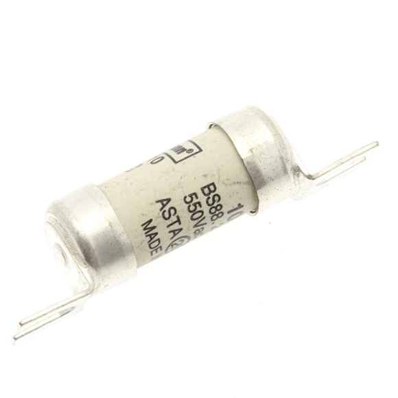 Fuse, Fuse-link, low voltage, 10 A, AC 550 V, BS88/A1, 14 x 55 mm, gL/gG, BS, offset bolted tags (slotted), general industrial applications, BS88-2, IEC 60269-2, Breaking Capacity 80 kA, Optional accessories fuse-holder RS20 CM32FC · · · Breaking Capacity: 80kA 550V AC · · Current Rating: 10A · · Length: 55.2mm · · Mounting Type: Bolt-in · · Voltage Rating: 550V AC · · Fixing Centre: 44mm