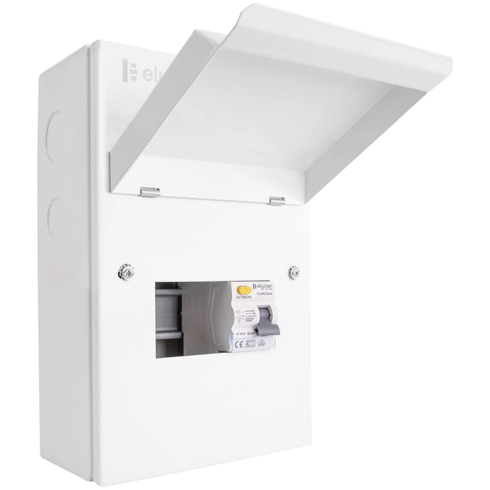All Elucian consumer units are constructed using non combustible and robust metal housings. They ensure compliance against the third amendment which was added to the BS 7671 wiring regulations in 2015 requiring consumer units in domestic premises to have a non-combustible enclosure.The units all come supplied with a wide range of 40mm,32mm, 25mm and 20mm knockouts making each board universally adaptable for all installation and cable types. The units also come supplied with rear knockouts to provide ample cabling capacity for any installation type. Each knockout will be supplied with a 0.5M grommet strip to allow a smooth entry into the board, protecting cable from any potential sharp edges · · · Can be installed on the left or right of the enclosure. · · A fast release Keyway DIN Rail allows for ease of installation. · · Lock Off Capabilities · · Large Space for Wiring · · Rear Knockouts · · Accessories Pack · · To be equipped with 2-module plates