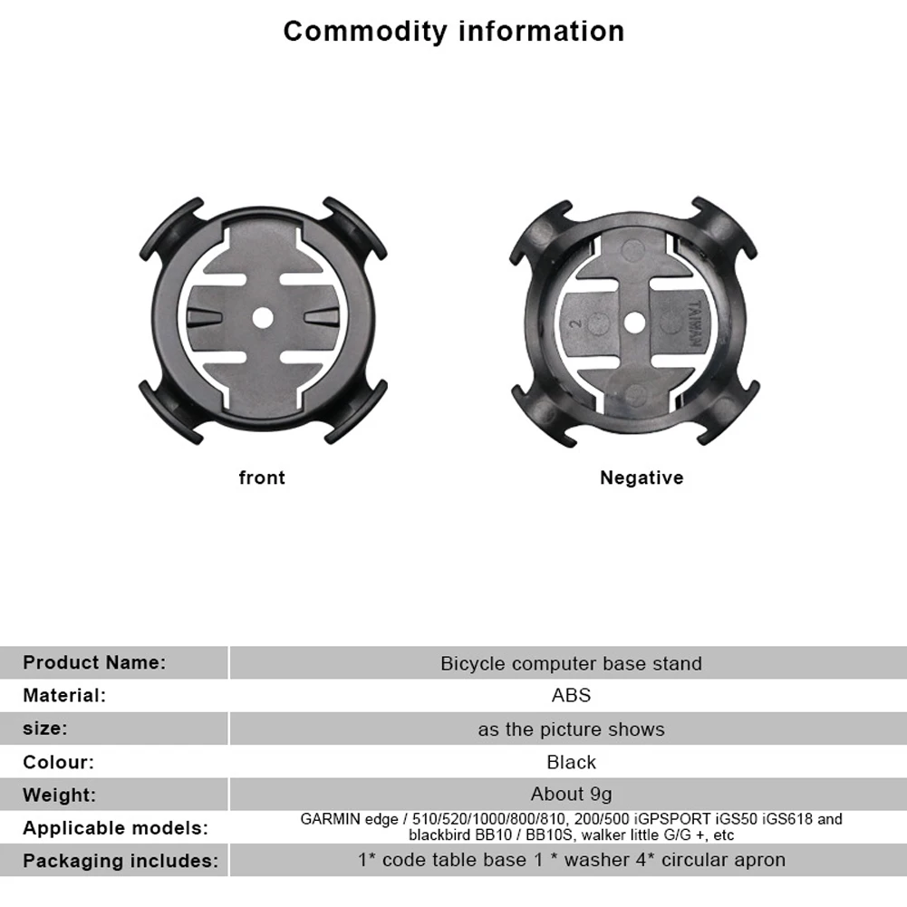 *100% brand new and high quality *Made of high quality material, durable and practical to use *Bike Bicycle Edge Quarter Turn Computer Mount for Garmin Stem or Handlebar Specification: *Material: ABS+Rubber *Color: Black (As Pictures Show) *Weight: About 10g Package Includes: 1 x Bicycle Computer Mount 1 x Rubber Rripper 4 x Bands