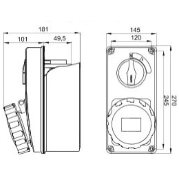 63A 3P+N+E 400V V.INT.SOCK.O.W.B.6H SBF · · · IP67 · · IK08 · · 850 degree glow wire test · · 125 degree thermo pressure test