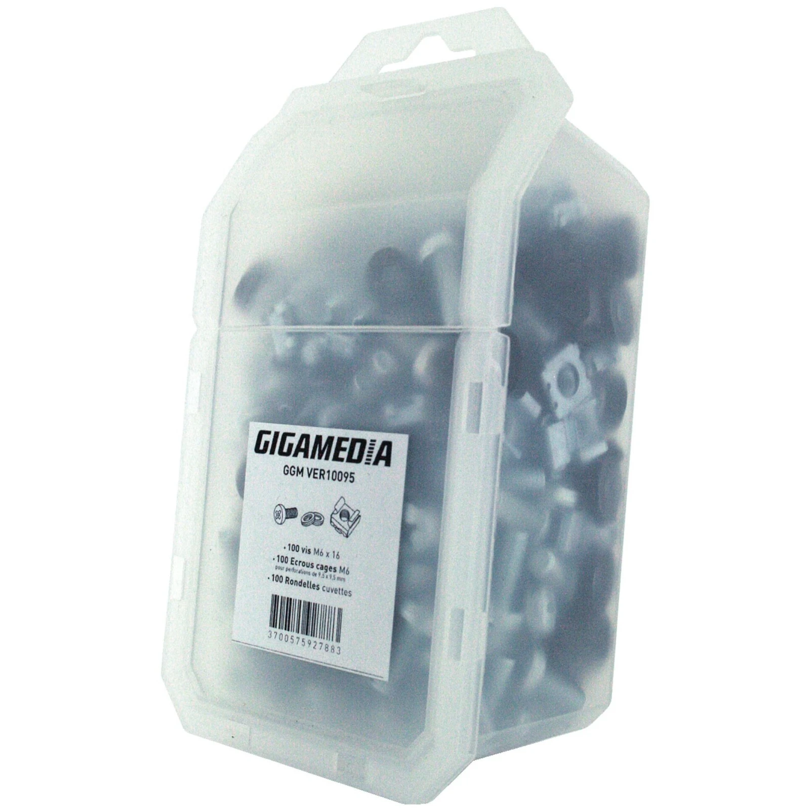 Gigamedia Set 100 Screws M6 X 16mm + Cup Washers + Cage Nuts M6 95 X