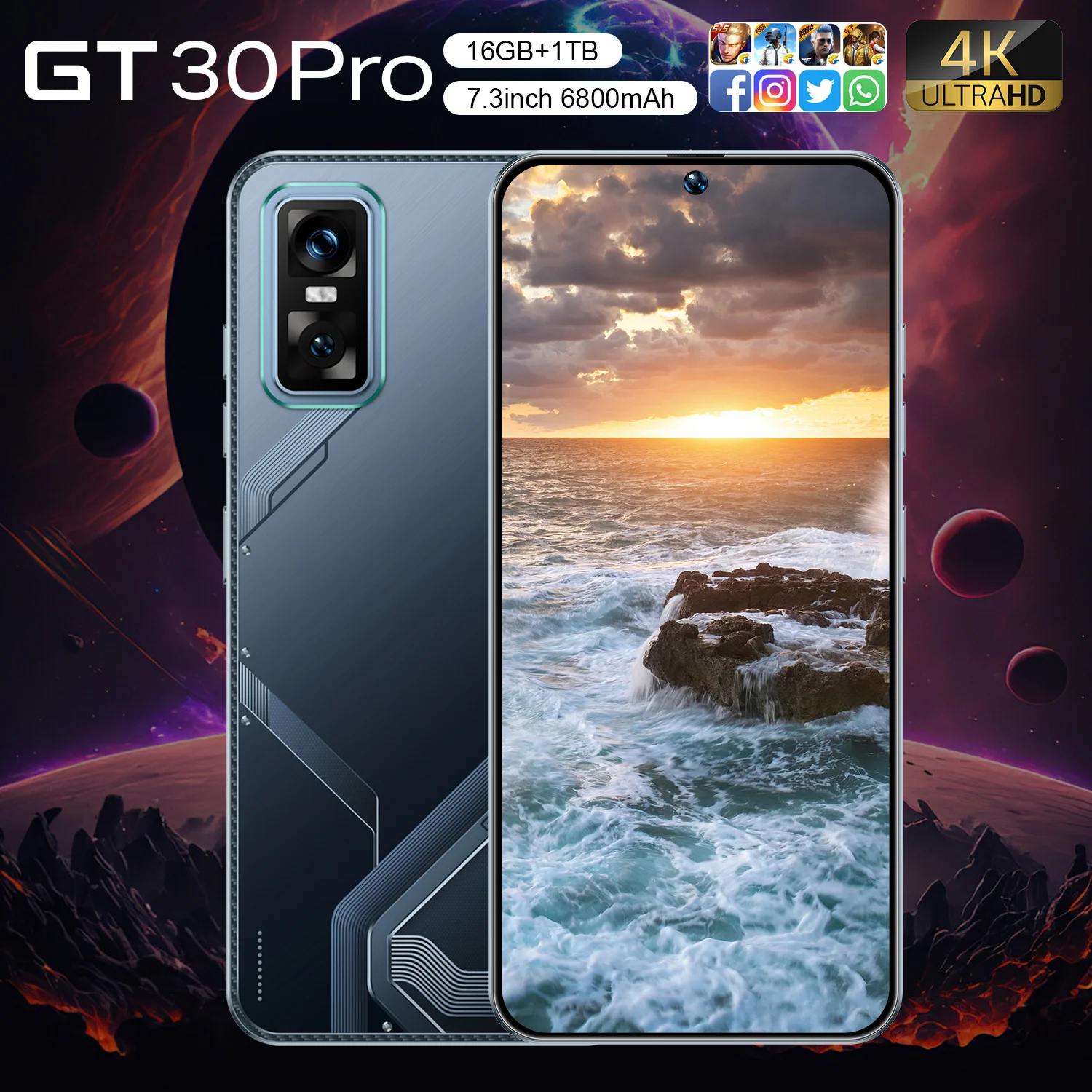 Global Version GT30 Pro Smartphone 7.3 Inch 16GB+1TB Android 15 Decacore CPU HD Face Dual Card Gaming Spanish Operating