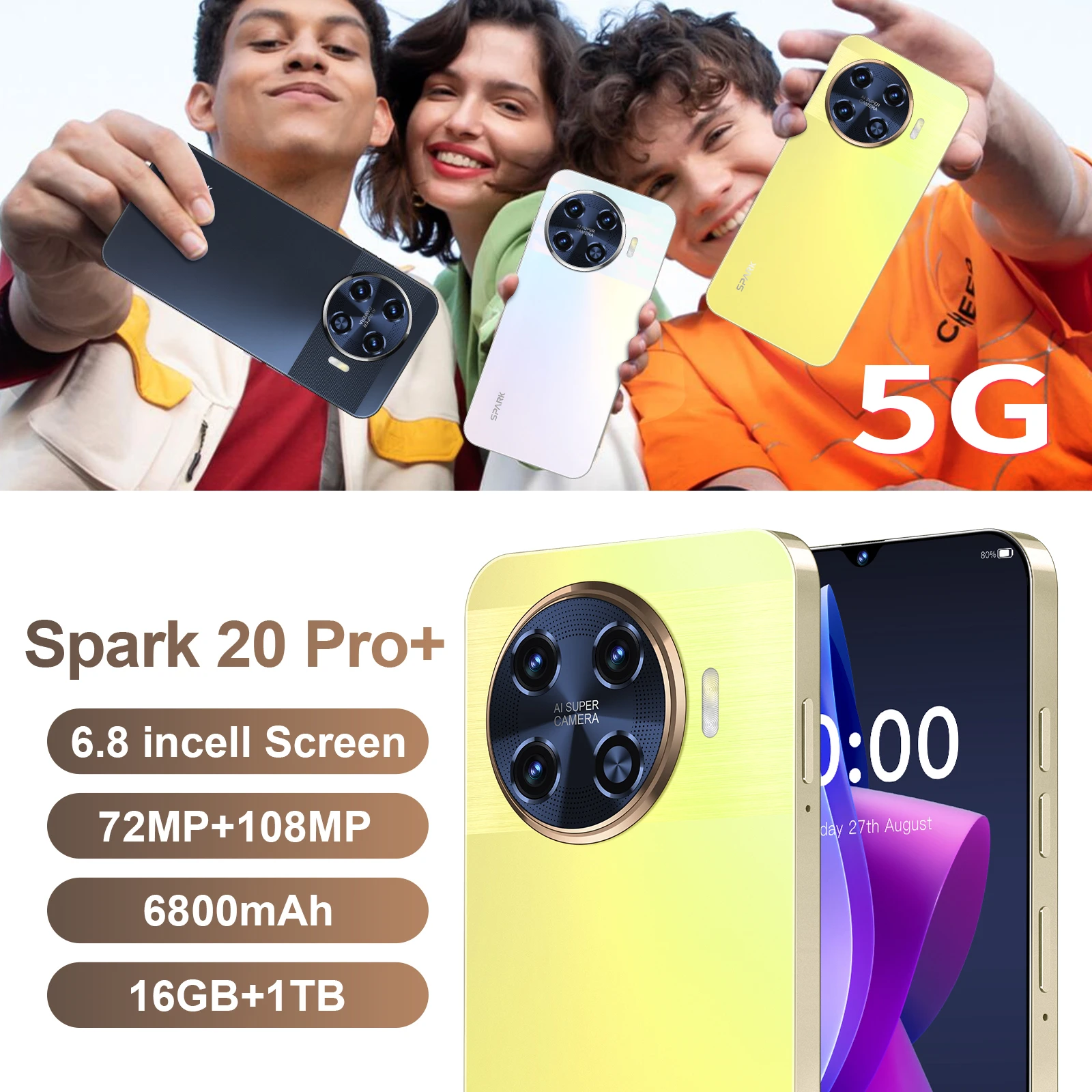 00:35Spark 20 pro CHIP Snapdragon 800 series SCREEN SIZE 7.3inch RESOLUTION RATIO 1440*3040 COLOR Black Purple Green Blue RAM 16GB ROM 1TB Operating Language English, German, French, Dutch, Spanish OPERATION SYSTEM Android 15 FRONT-FACING CAMERA 72MP REAR CAMERA 108MP BATTERY CAPACITY 8000mAh SET Mobile phone + packaging box + manual + charger +USB cable + headset + mobile phone protective film + protective case WEIGHT 500g