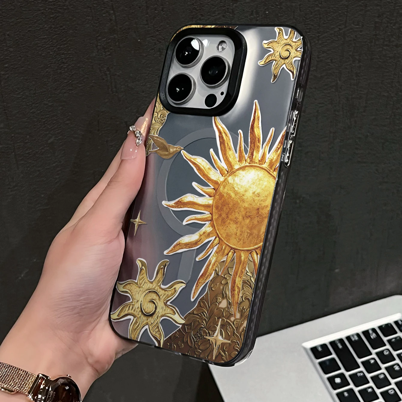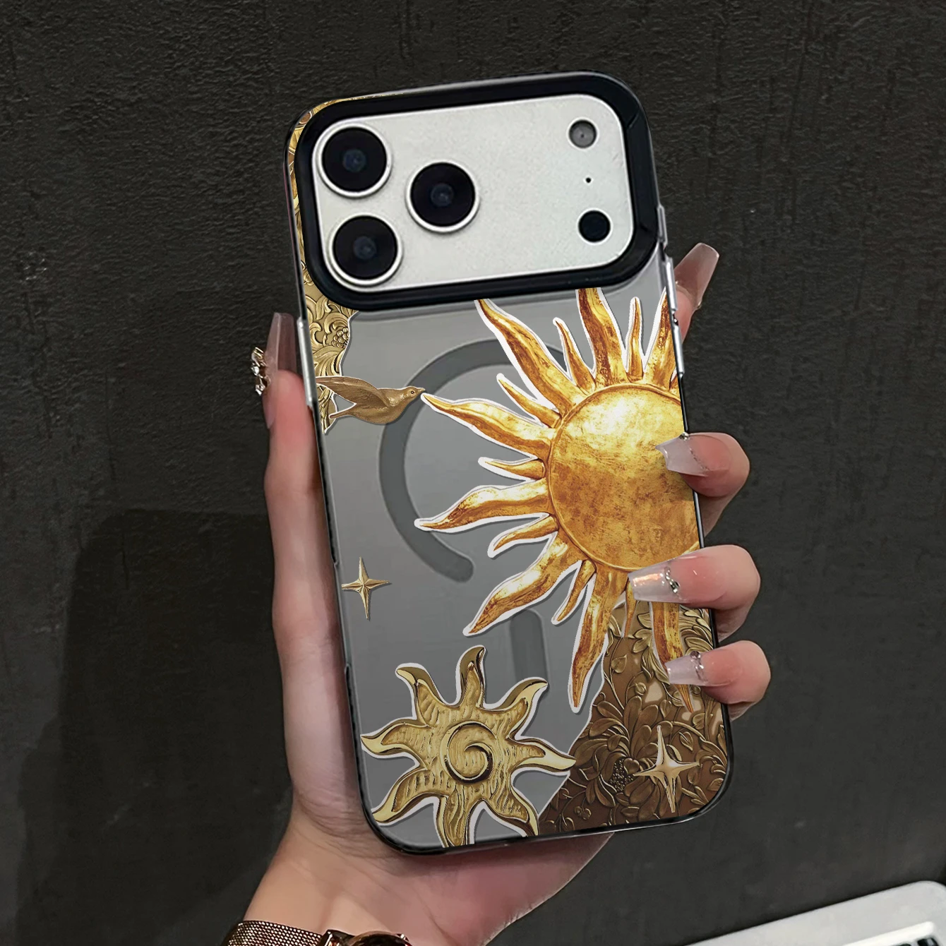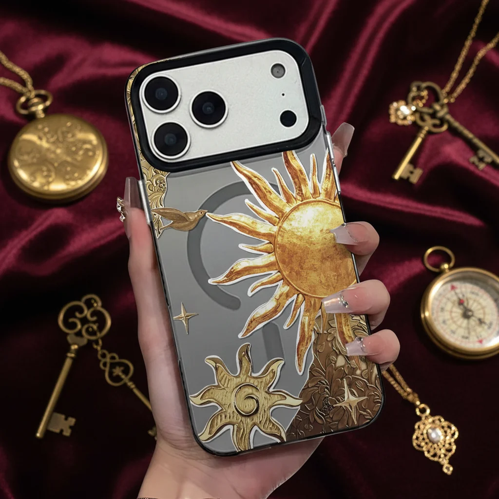 Golden Sun TPU Frosted Magnetic Mirror Case for 17/16/15/14/13/12/11 Pro Max with Shockproof and Lens Protection