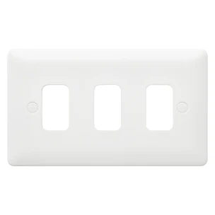 3 MOD GRID PLATE · · · Made Right, Priced Right · · Comprehesive range · · Comprehesive range · · 20 year warranty · · High gloss finish · · Supplied with screw caps · · Backed out captive terminal screws · · BIM ready · · Range uses vast MK Grid choices