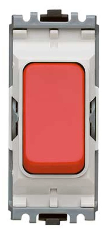 Red Rocker Switch Module, Grid Modules Clip Fit to Frame Without Special Tools, Modules can be Removed/Replaced when Grid Frame is Fixed in Position, All Products are 100% Tested Before Delivery, High Quality Grid Frame · · · Colour: White, Insert Colour: Red, Material: Moulded Plastic · · Current Rating: 20A, Voltage Rating: 250V AC · · Height: 59mm · · Number of Poles: Double Pole · · Width: 22mm · · With Neon: Without Neon · · Depth: 22mm · · IP Rating: IP4X · · Number of Gangs: Single Gang · · Number of Ways: One Way