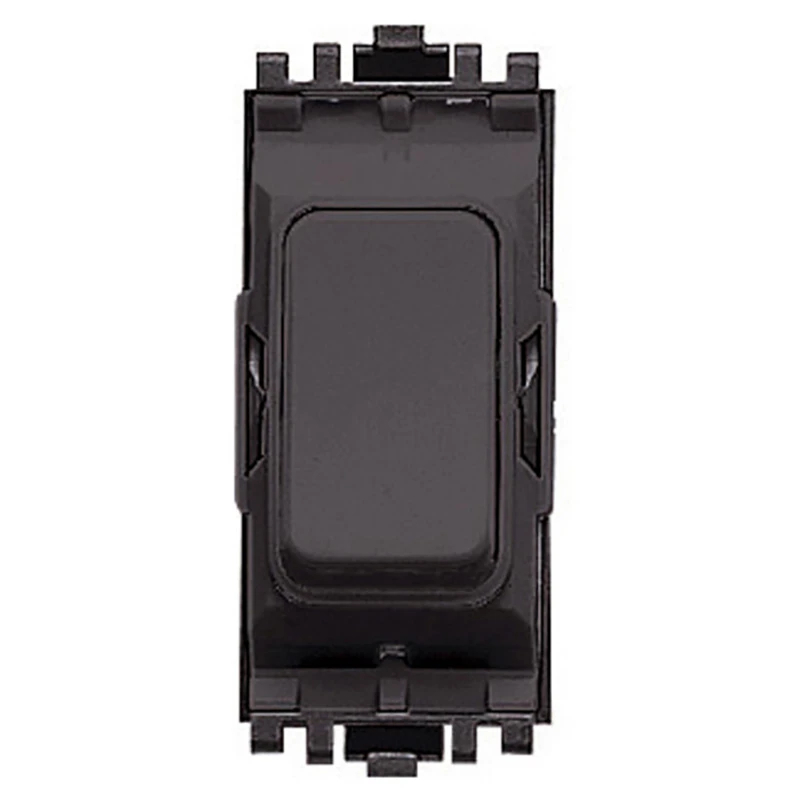 The switch module features easy to fit and change, simply clip into place from the front of the mounting frame. The grid module clips to the frame without any requirement for special tools. It can be moved, removed or replaced whilst the frame is fitted to the box making installation or replacement speedy and simple. The simple clip fit mechanism holds to the mounting frame in order to place from the front. This switch does not have to be derated when used with fluorescent or inductive loads and is manufactured according to BS EN 60669-1:1999 standards. · · · Ideal system for commercial and public building applications
