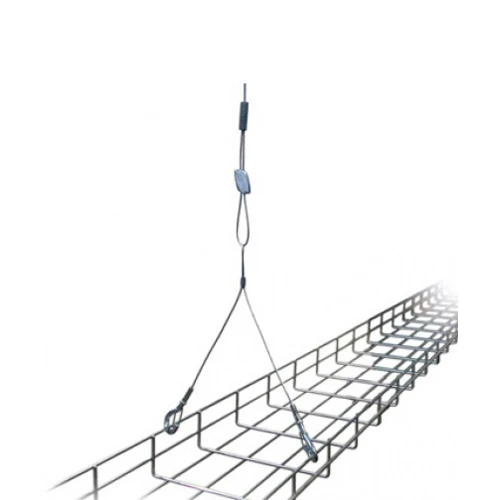 Gripple Y-Fit Hanger with end fixing hook, used in conjunction with a Standard Gripple HF. Ideal for long drops allows flexibility of end fixings at top and bottom of complete assembly. Final installation angle at the ferrule should not exceed 60°. Hook version is ideal for use with the G-Bracket. · · · With hook end · · Ideal for light fixtures, cable basket, and other suitable services · · Final installation angle at the ferrule should not exceed 60°