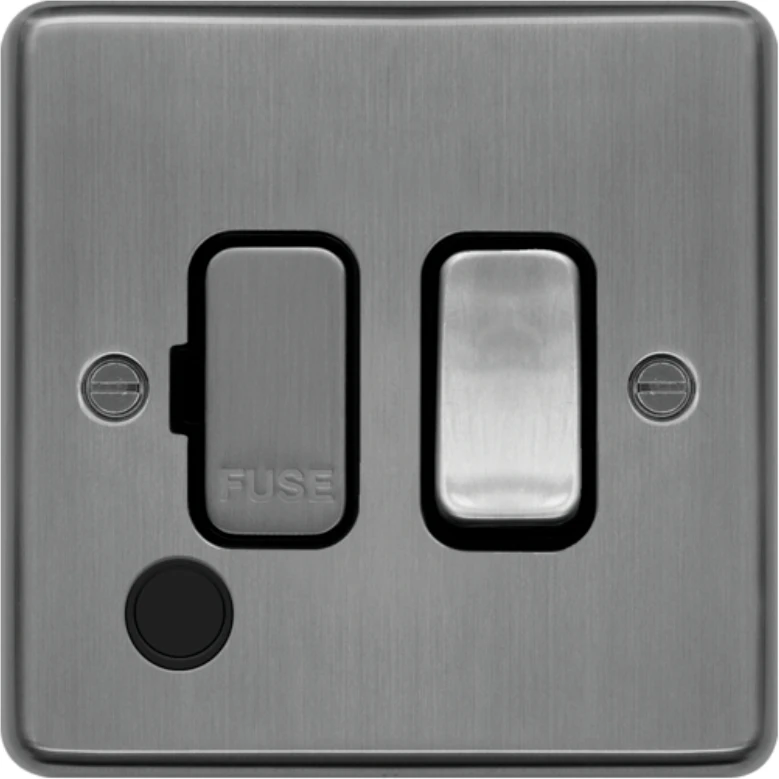 13A FCU Switched with Flex Outlet Brushed Steel Black Insert