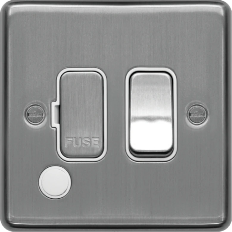 13A FCU Switched with Flex Outlet Brushed Steel White Insert