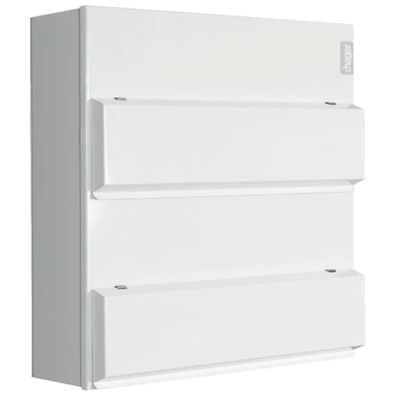 Hager – Energy Distribution VML12020 Design 10 Consumer Unit 20+20 Way Switch Disconnector 100A Steel Dual Row · · · Product: Consumer Unit · · Incomer Included?: Y · · Door/Lid Type: Solid · · Incomer Current Rating?: 100 A · · Pole Configuration: Single Pole (1P) · · Outgoing Ways: 40 Way · · Metered: N · · Mounting: Surface · · Ingress Protection: IP3X · · Split Load: N