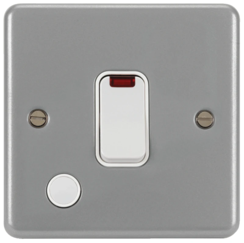 Hager Control Switch 1 Gang DP Flex Outlet&LED 20A Grey Metalclad Back
