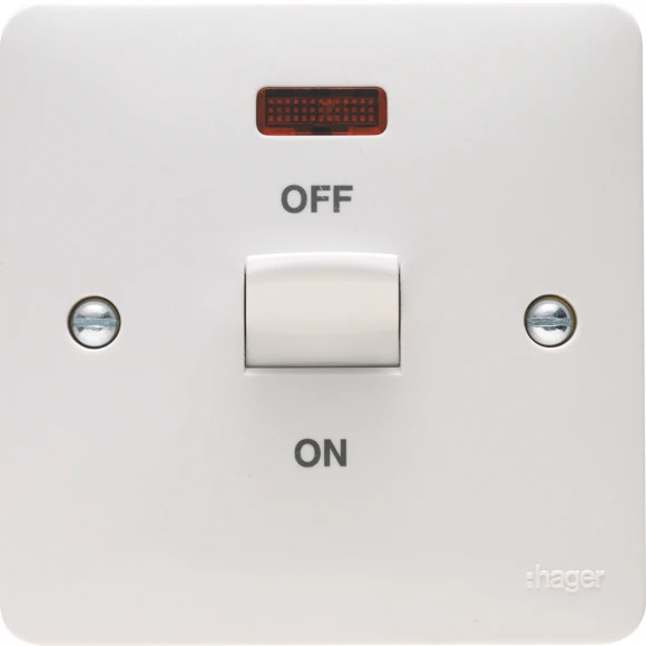 Hager Control Switch 1 Gang DP LED Indicator 50A White Marked Shower