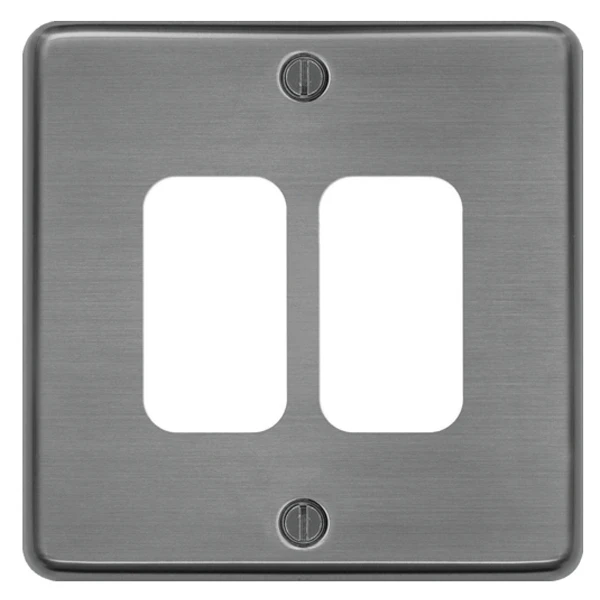 Hager Grid Plate 2 Gang Brushed Steel