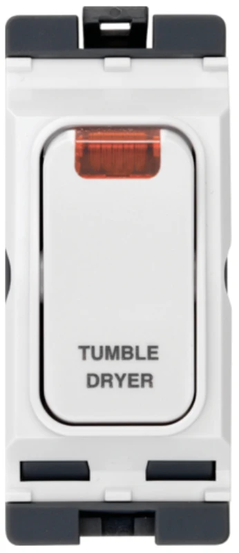 Hager – Wiring Accessories WMGSDP2N/TD Sollysta Grid Switch 1 Way DP Module c/w LED Indicator 20A White Marked Tumble Dryer · · · Complies with BS EN 606691-1 switches, BS 5733 fuse carrier · · Shallowest switch modules which clip in from the front for ease of installation and maintenance · · Terminal screw can be accessed with modules clipped into frames · · Frames locate to finished wall level · · Frames clip together to ease alignment for 6 gang and 8 gang applications