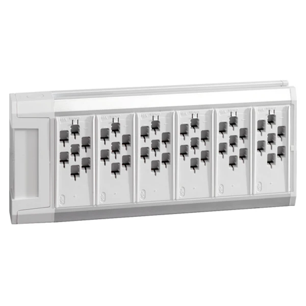 Hager Klik Lighting Marshalling Box with single supply, wire in, plug out. Allows the connection and control of multiple luminaires. The marshalling box utilises a robust extruded aluminium body. Short circuit tested 1500A conditional rating. · · · Allows the connection and control of multiple luminaires · · Utilises a robust extruded aluminium body · · 16A rated · · Short circuit tested 1500A conditional rating · · 6 Way