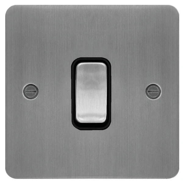 Hager Plate Switch 1 Gang 2 Way 10Ax Brushed Steel Black Insert