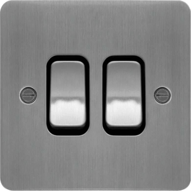 Hager Plate Switch 2 Gang 2 Way 10Ax Brushed Steel Black Insert