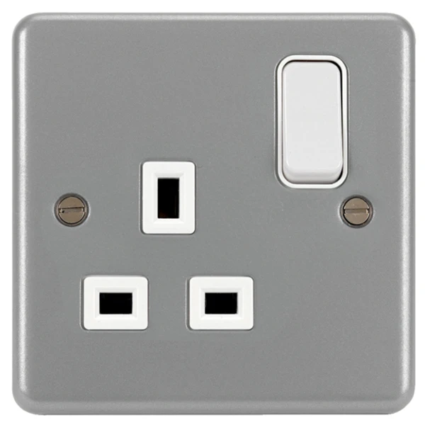 Hager Metalclad 1-Gang Switched Socket Outlet with back box and knockout. Unique patented three part safety shutter. Complies with BS 1363-2, AC only. Double pole switching mechanism on switched sockets, twin socket comes with twin earth as standard. Terminal screws grouped in-line and upward facing for ease of installation with clear printed and engraved terminal markings. Capacity of each terminal is 5 x 2. · · · With backbox and knockout · · Unique patented three part safety shutter · · Complies with BS 1363-2, AC only · · Terminal screws grouped in-line