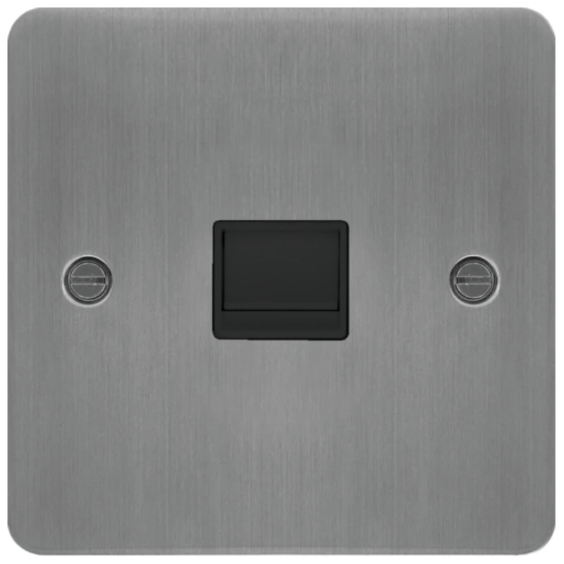 Hager Socket 1 Gang Tel Secondary Brushed Steel Black Insert