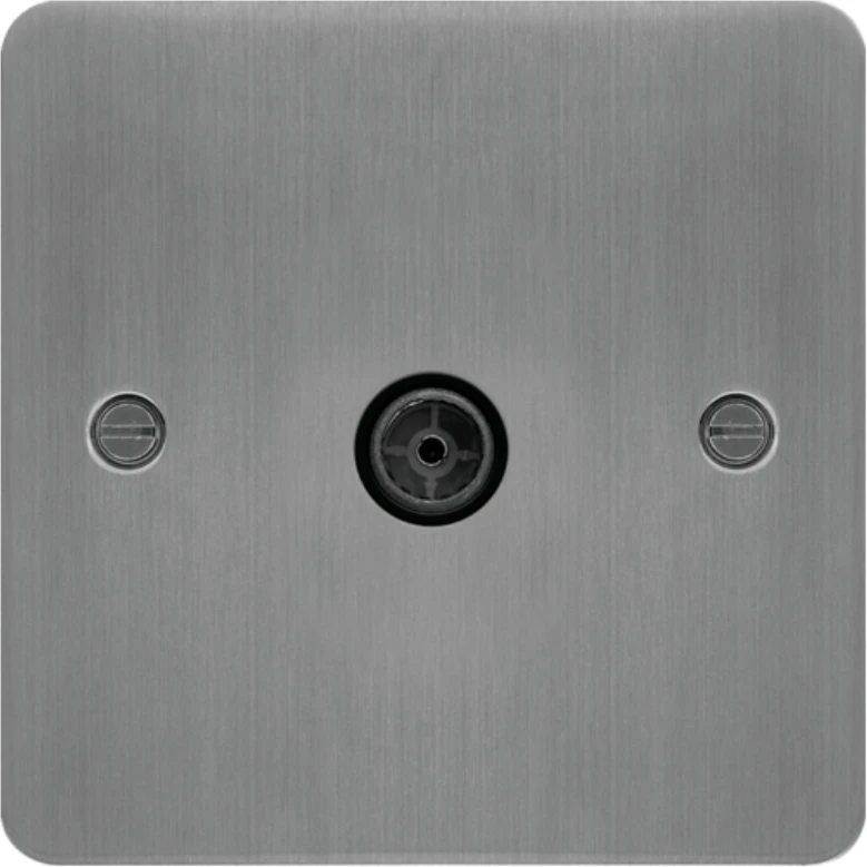Single Co-ax TV Outlet Female Brushed Steel Black Insert