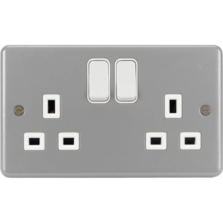 Hager Socket 2 Gang DP Switched Backbox 13A Grey Metalclad W/O Ko