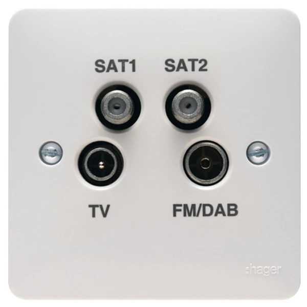 Hager Socket Quadplex TV & FM/DAB &2X Satellite White