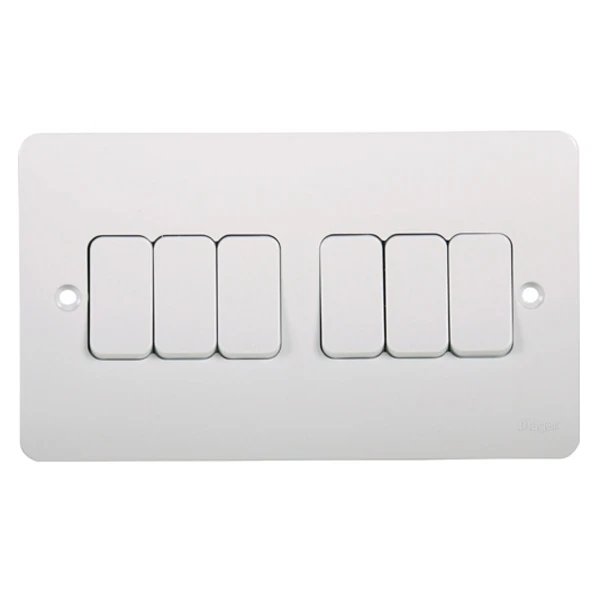 Hager Sollysta Switch 6 Gang 2 Way Wall 10AX White