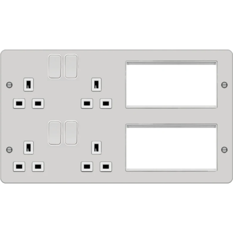 Hager – Wiring Accessories WFTVLPWW Sollysta Media Plate 2x2Gang Socket&2×4 Euromod Cut-Outs White Metal c/w Insert for TV/Power&Data · · · Face Colour: White · · Insert Colour: White · · Nominal voltage 250 V