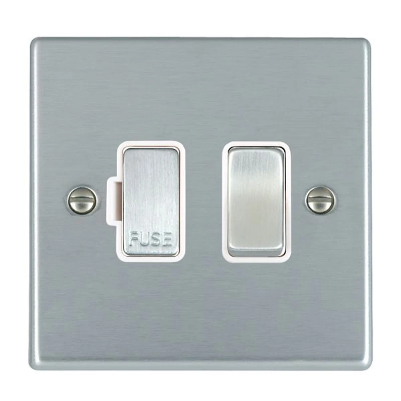 Hamilton Hartland Fused Connection Unit with satin chrome finish. A range of sleek and stylish accessories with slim front plates to complement today’s interiors. This attractive range is available in nine elegant finishes with complementary switch insert finishes. Must be earthed. Internal Use Only. · · · Single – Nominal Dimensions H: 88.0mm W: 88.0mm D: 5.0mm – Box Fixing Hole Centers: 60.3mm · · Generic Size: Single · · Switched Poles: Double · · Current Rating: 13 Amp · · Voltage: 220/250V AC · · Maximum Load 13 Amp · · Mains Frequency: 50Hz · · IP Rating: IP2XD · · Standard/Approval: BS 1363-4 · · Insert Finish/Surround Colour: Satin Chrome/White – Plate Finish: Satin Chrome