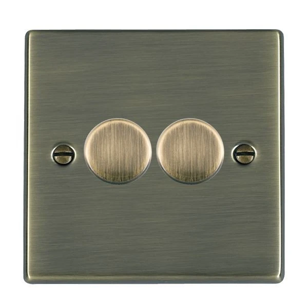 Hamilton Dimmer Switch 2 Gang LED 2 Way Push On/Off 100W 88X88mm Antique Brass
