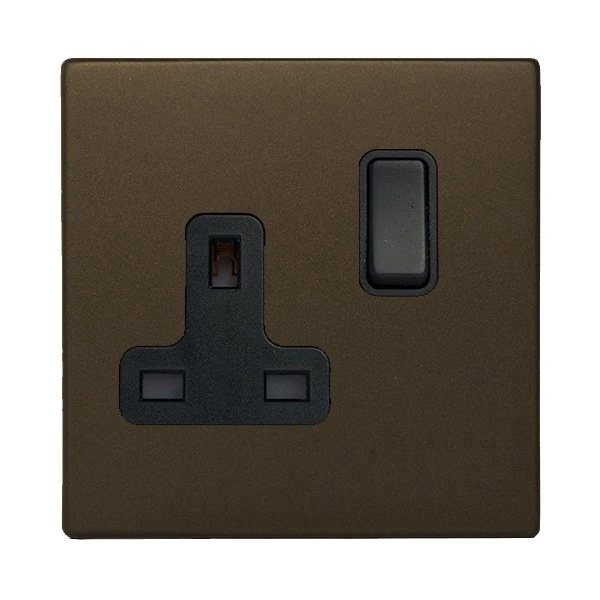 Hamilton Socket 1 Gang DP Switched 13A 86X86mm Richmond Bronze Black Insert
