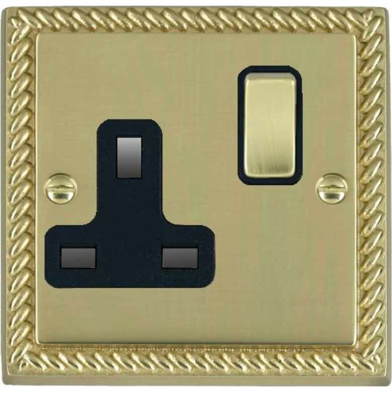 Hamilton Socket 1 Gang Switched 13A 88X88mm Polished Brass Black Insert