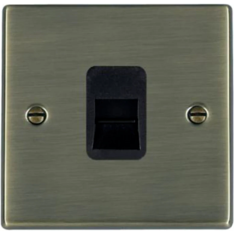 Hamilton Socket 1 Gang Tel Slave 88X88mm Antique Brass Black Insert