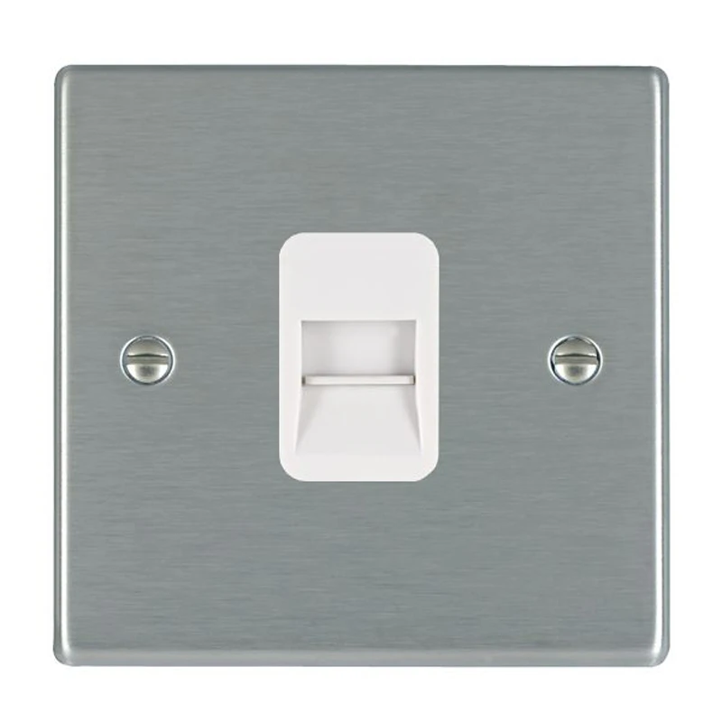 Hamilton Socket 1 Gang Telephone Slave 88X88mm Satin Steel White Insert