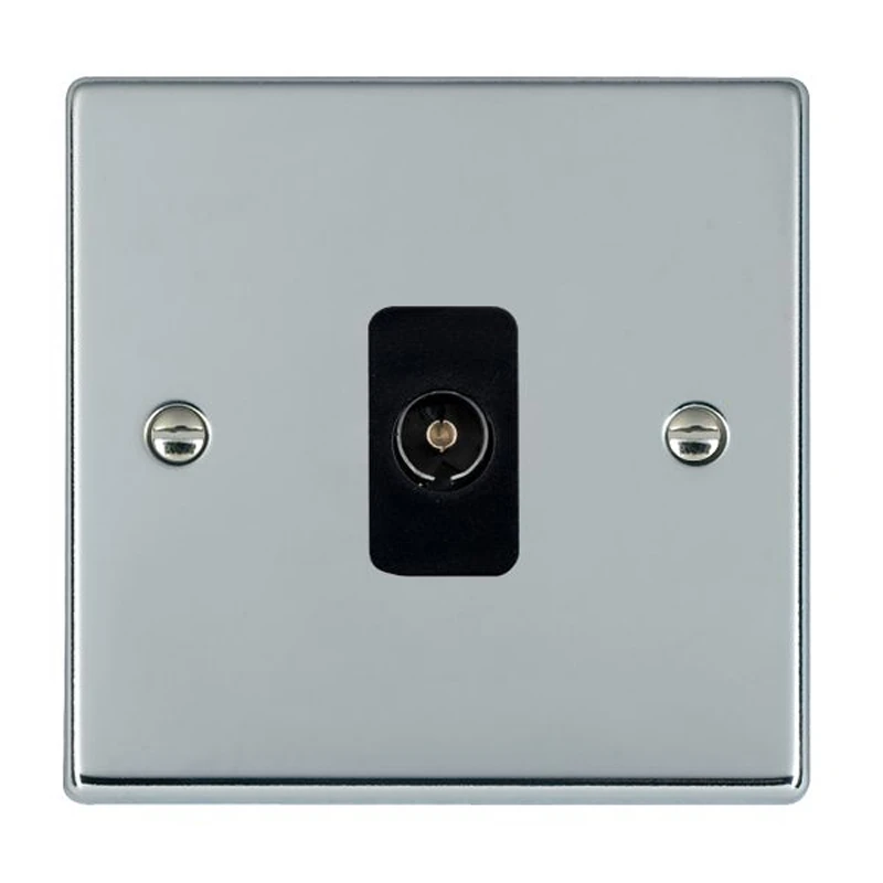 Hamilton Socket 1 Gang Tv Coax 88X88mm Bright Chrome Black Insert