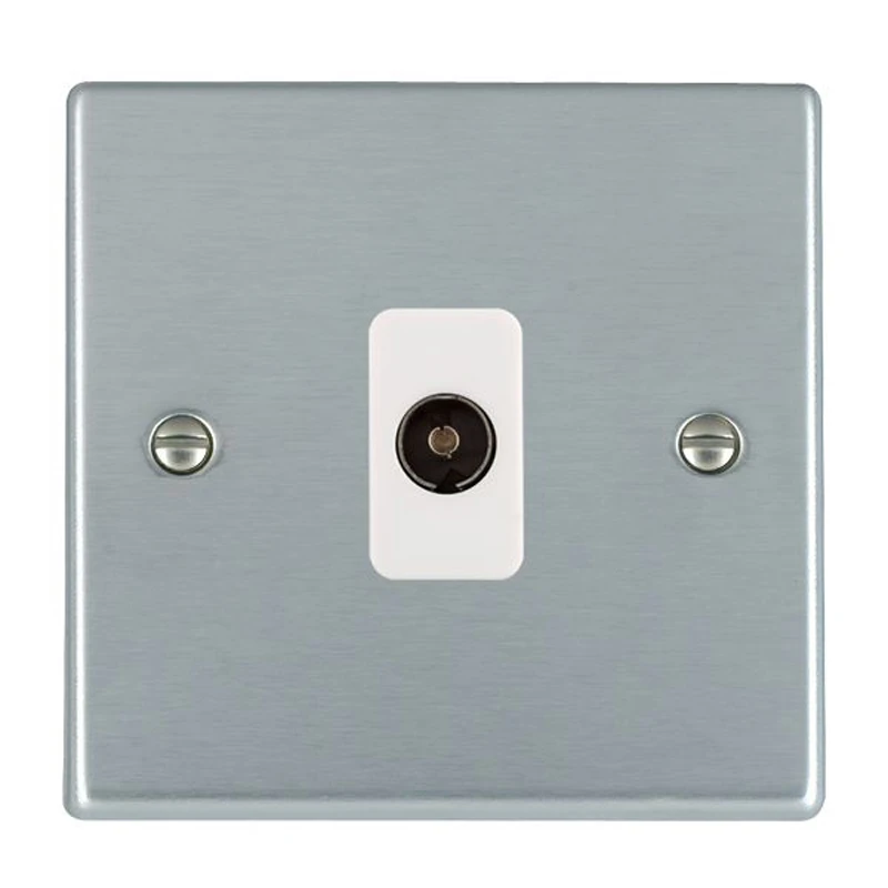 Hamilton Socket 1 Gang Tv Coax 88X88mm Satin Chrome White Insert